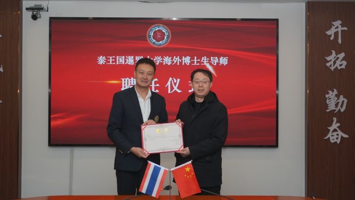 签约后,张力院长代表暹罗大学向谢海军教授颁发了博士生导师聘任书,正式聘任其参与暹罗大学博士培养工作。